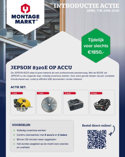 Maak kennis met de Jepson 8320E op accu: dezelfde vertrouwde kracht als de bekende Jepson 8320, maar nu volledig snoerloos. Ideaal voor het zagen van sandwichpanelen, profielplaten, kabelgoten, buizen en profielen met een maximale zaagdiepte van 120 mm.